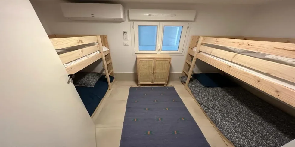 Elle peut accueillir 6 adultes et 4 enfants (4 lits superposés de 80x190 cm)